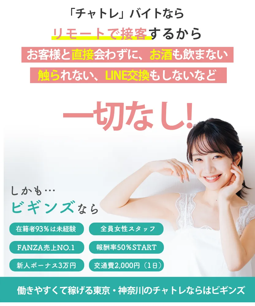 だけど…キャバクラや風俗はやりたくない、そんな女の子が内緒でやってる誰にもバレないインターネットを使った高収入アルバイトがチャットレディです。