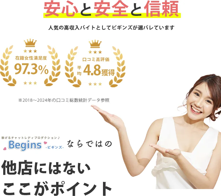 ライブチャットで稼ぐためのプロである私たちBegins(ビギンズ)のスタッフとともに、高額報酬をGETできるように一緒に頑張りましょう!